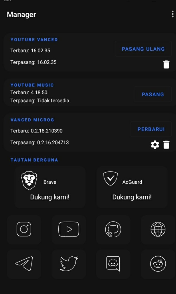 melalui gambar diatas kita pasang youtube vanced dan vanced microg. setelah itu kita buka vanced manager